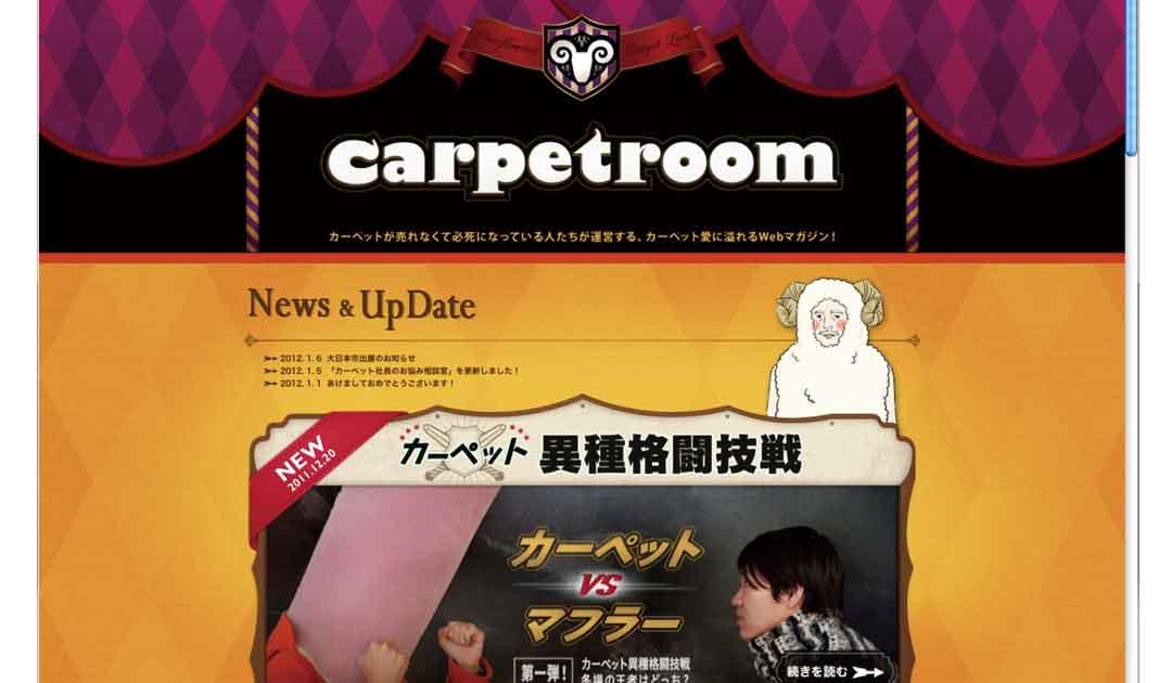 新ブランドづくりの為にも、まずはフローリングの普及でカーペットそのものが消えようとしている現状を打開すべく、カーペットの良さを啓蒙する活動としてWEBサイト「carpetroom」を立ち上げ。一風変わった切り口から、カーペットの良さである「アレルギーのない、じゅうたん生活」を伝える活動を行いました。