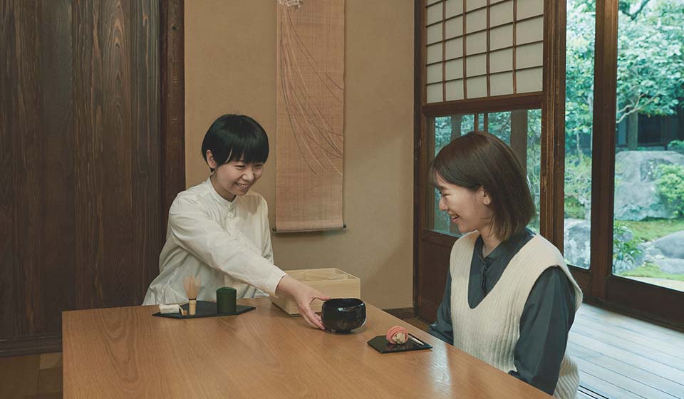 中川政七商店の歴史がアーカイブされる「時蔵」など、奈良本店の見どころをスタッフが案内した後、本店に併設している「茶論(さろん)」にて、お茶とお菓子でほっと一息お過ごしいただけます。