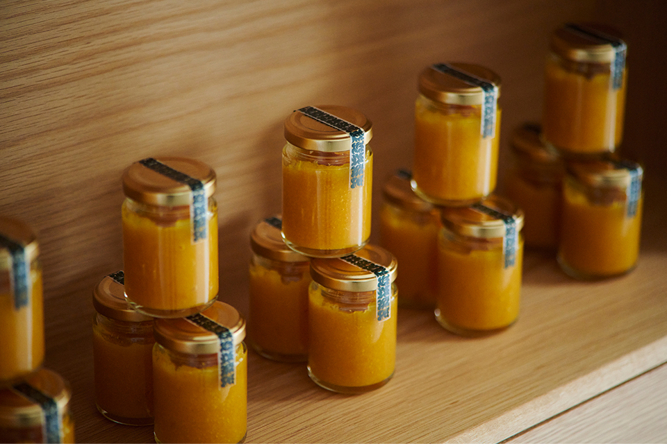 菓子の起源であり、今では水菓子と呼ばれる果物。自然のみずみずしさを丁寧に味わうという、菓子の豊かな伝統を未来へ繋いでいきたい想いから、お菓子と合わせるペアリングジャムを作りました。シンプルなお菓子にひとさじ添え、果実の香りと酸味や苦味が生む、奥深いペアリングをお愉しみください。