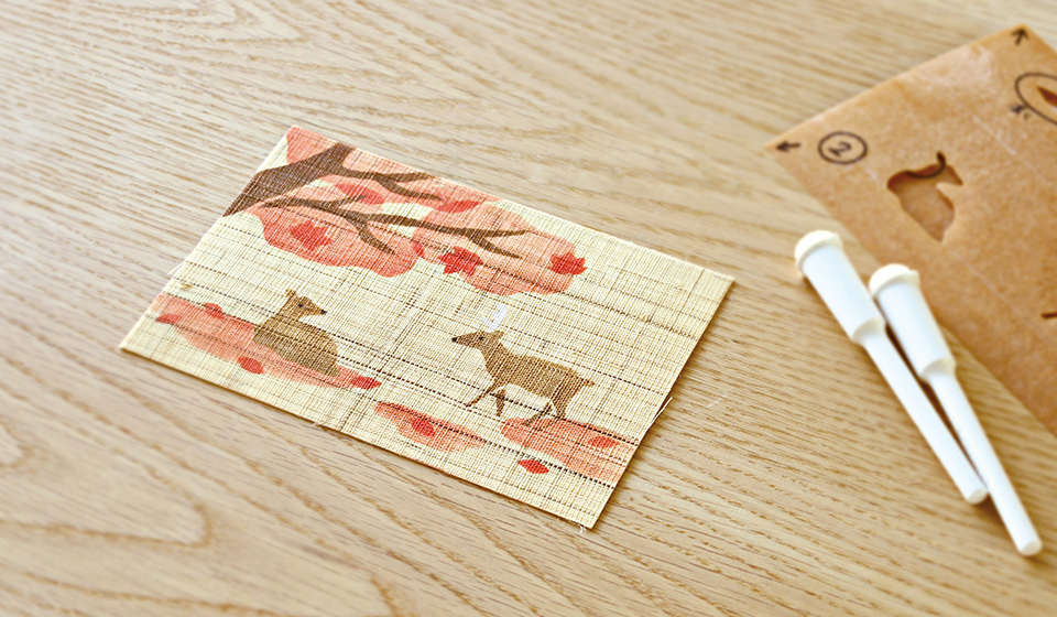 「麻はがき体験」は、秋限定柄の「鹿と紅葉」をご用意しています。