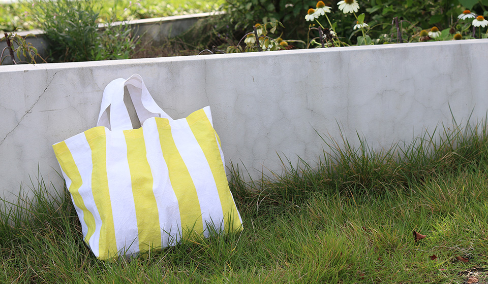 息子の保育所の通園かばんとして使っている綿麻しましまエコバッグ。