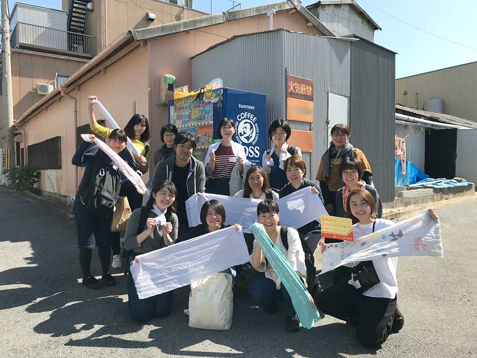 12名の店長が降り立ったのは、古くから手ぬぐいの産地として知られる大阪府堺市毛穴町です。