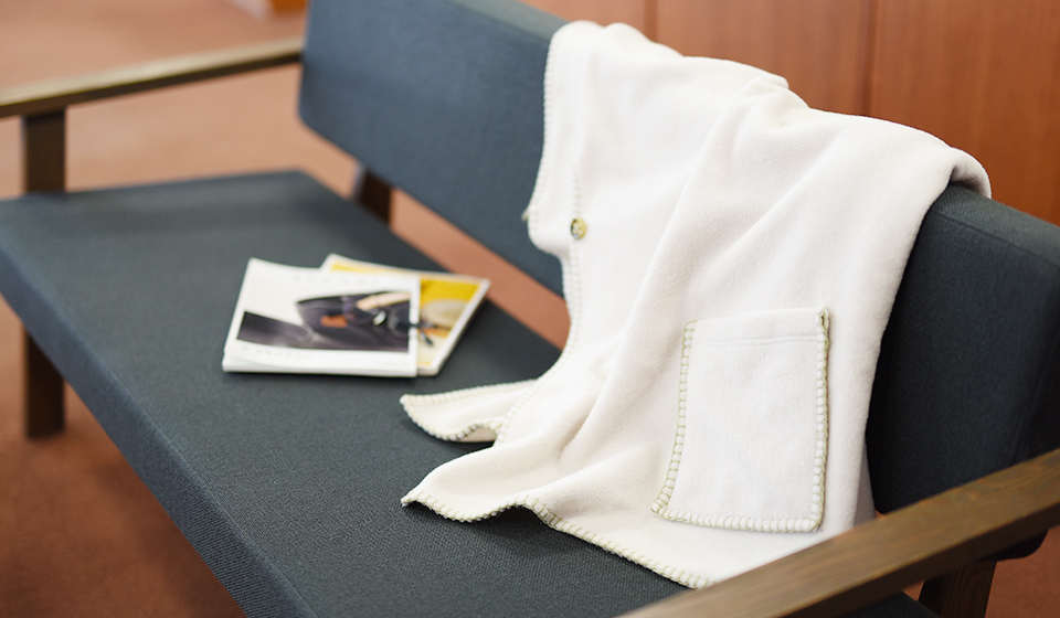 「ブランケットステッチのポケットストール」はなめらかな肌ざわりが気持ちいい厚手のフリース生地で、とってもあったか。大判なのでさっと羽織れば腰あたりまでぬくぬく。ボタンを止めればやさしく包まれているような感覚で全身をあたためてくれます。ポケットもついているので、眼鏡などの小物を入れたりできて家にいるときに羽織るのにぴったりだと思います。