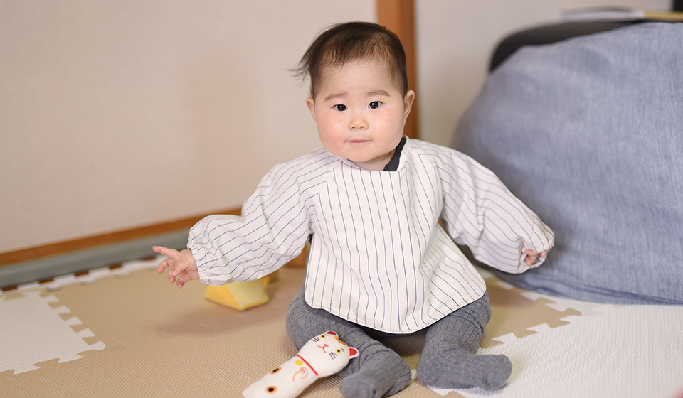 遊び着にも使える、赤ちゃんの割烹着