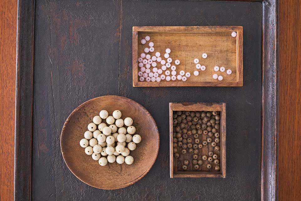 糸切れを起こしにくいしっかりとしたお念珠に仕立てられる工夫が施された「珠」と
