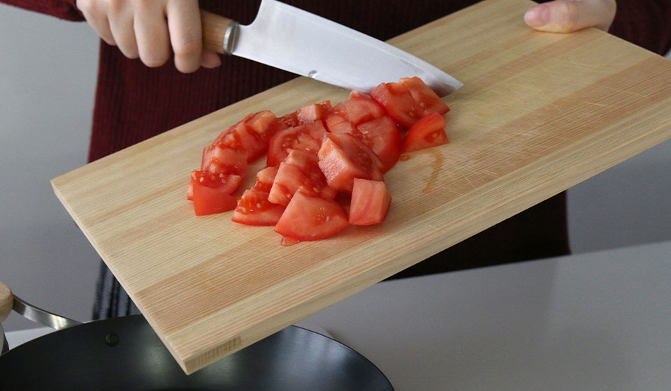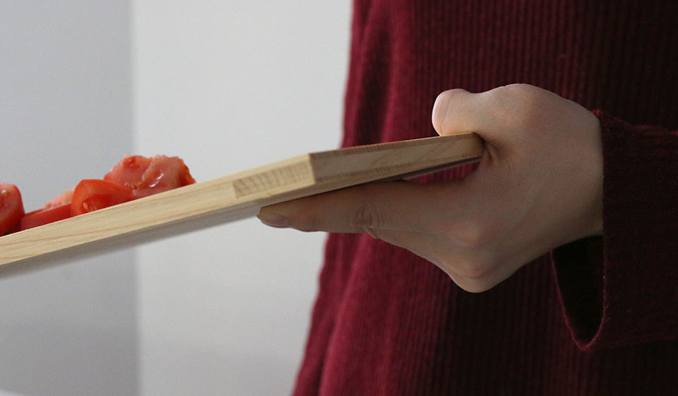 とても軽いので、切った食材もまな板ごと持ち上げてお鍋に、なんてことも気軽にできます。
