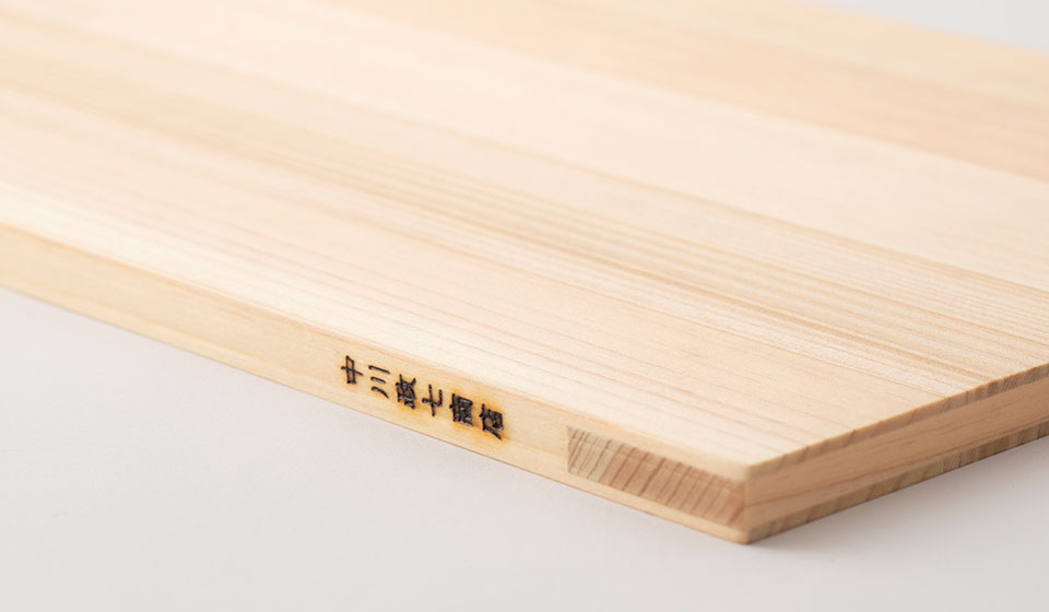 その秘密は、まな板の両端に板目が垂直になるように板をはめ込んだこと。これによって反りにくくなり、ぎりぎりまで薄く仕上げることができたのだそうです。