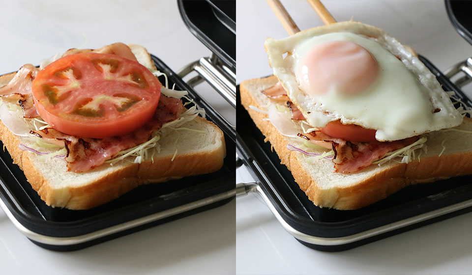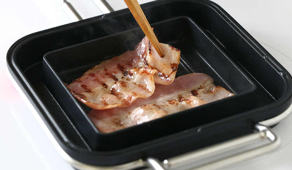 たとえば、片方でベーコンを焼いて取り出す→目玉焼きを蒸し焼きに→