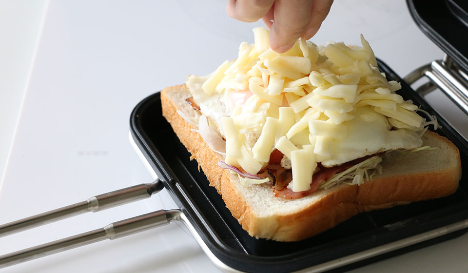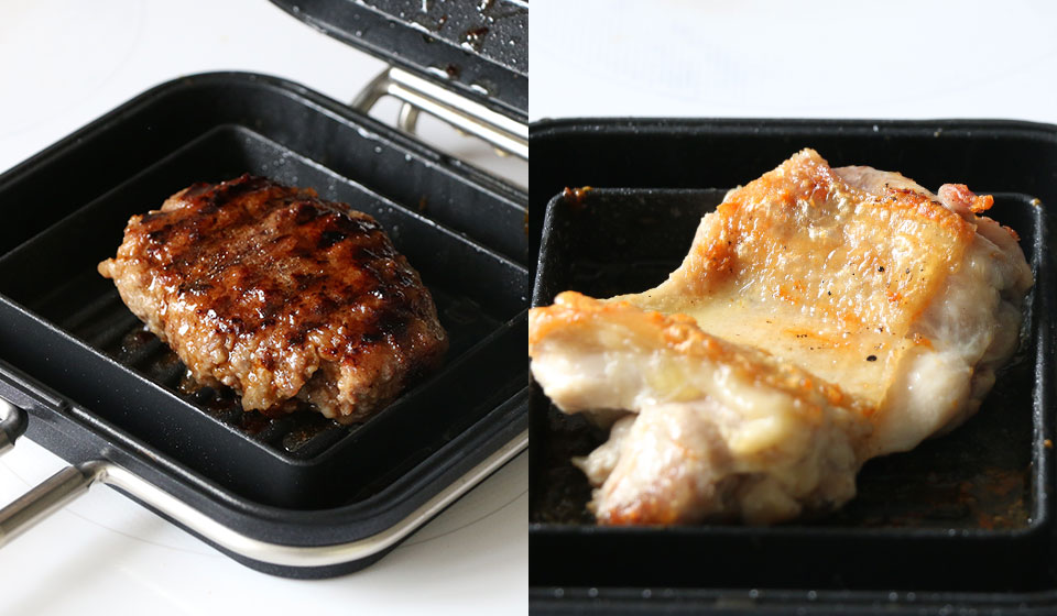 鶏肉でも、ハンバーグを焼いたとしても、ホットサンドの具として余裕で挟めるので、