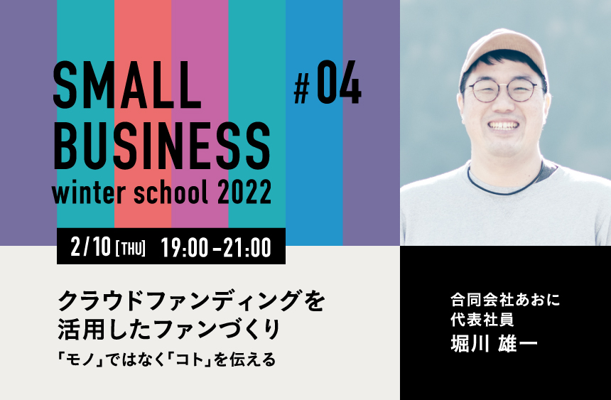 SMALL BUSINESS winter school 2022の期間中、講座とは異なりますが、同じくスモールビジネスのヒントとなるようなイベントを同時開催いたします。こちらも奮ってご参加ください。