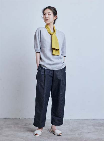 真夏にサラッと着られる麻素材で、Tシャツよりも上品で、ブラウスよりもカジュアル。夏の大人の日常着としてぴったりのトップスです。