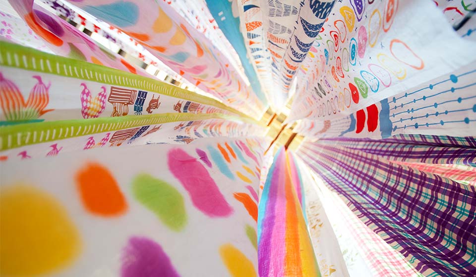 「にじゆら」は、昔ながらの染め技術を最大限に生かしながら、新たな個性を掛け合わせ、今の時代にそぐうかたちに、そして「注染(ちゅうせん)」をのちの未来まで残したいという熱い想いから誕生しました。
