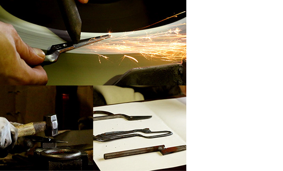 鍛造の鋏は、鋼を叩けば叩くほど強度が増して丈夫になり、刃を磨く技術が高ければ高いほど切れ味が良くなるそうです。