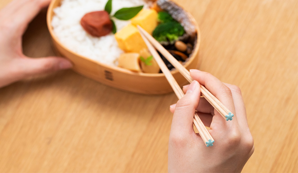 お花の形状は見た目の良さだけでなく、元々は持った時の滑りやすさを解消するために生み出されたものだそう。ヒダの部分がグリップになって滑らず、とても持ちやすいです。余計な力がいらない分、軽い持ち心地で箸さばきも楽にできます。