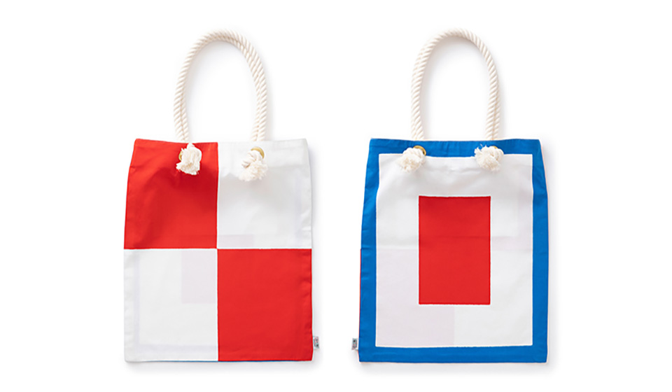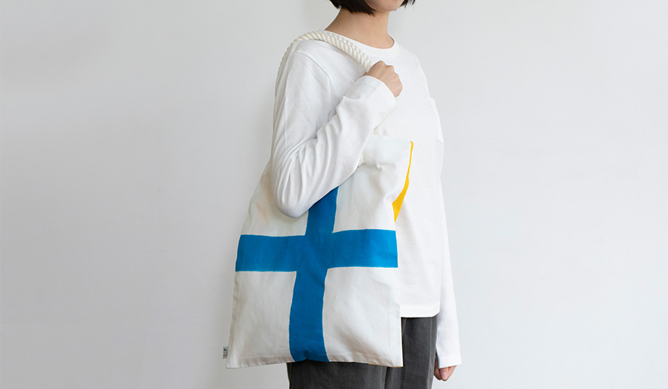 絶大なインパクトの奥に、港町の手仕事が詰まっています。加賀谷旗店の国際信号旗フラットバッグ