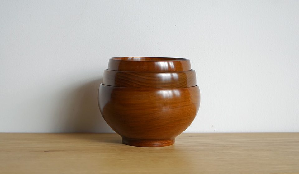 大中小と揃えたくなるシルエットと使い心地です。薗部産業の「めいぼく椀」