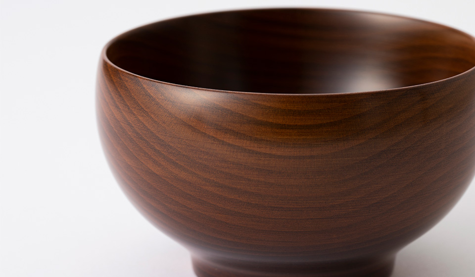 流行ではない「普遍的と多面的なデザイン」 それが、わたしたちの目指すところ。 伝統に守られるのではなく、伝統を応用し、 その時代その時代に、 ”絶対”のない木のうつわと道具たちは、 美味しいゴハンをもっと美味しく、 愉しい生活をもっと愉しく。まず心奪われたのが手触りの良さでした。ツルンツルンの表面と、ほっぺのようにふっくらしたフォルム。両手で持つと自然と手に沿うようなフィット感があります。