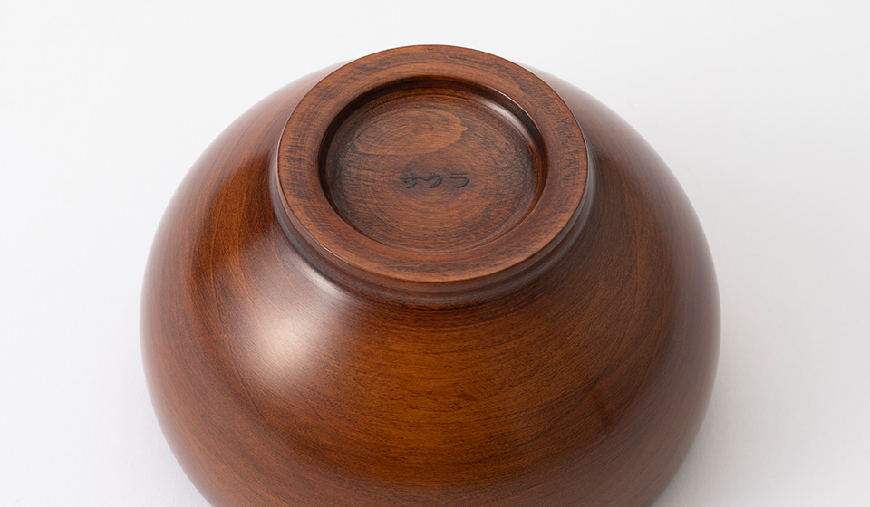 食事の後に洗って伏せておく時に、ひとつお楽しみがあります。それが高台に刻印された「サクラ」の文字。お椀の素材が桜であることを示しています。最初は子どもが持ち物に名前を書いているようで不思議な気持ちだったのですが、目に留まるたびになんだか愛着が湧いて、一層大切に思う気持ちに変化してきました。