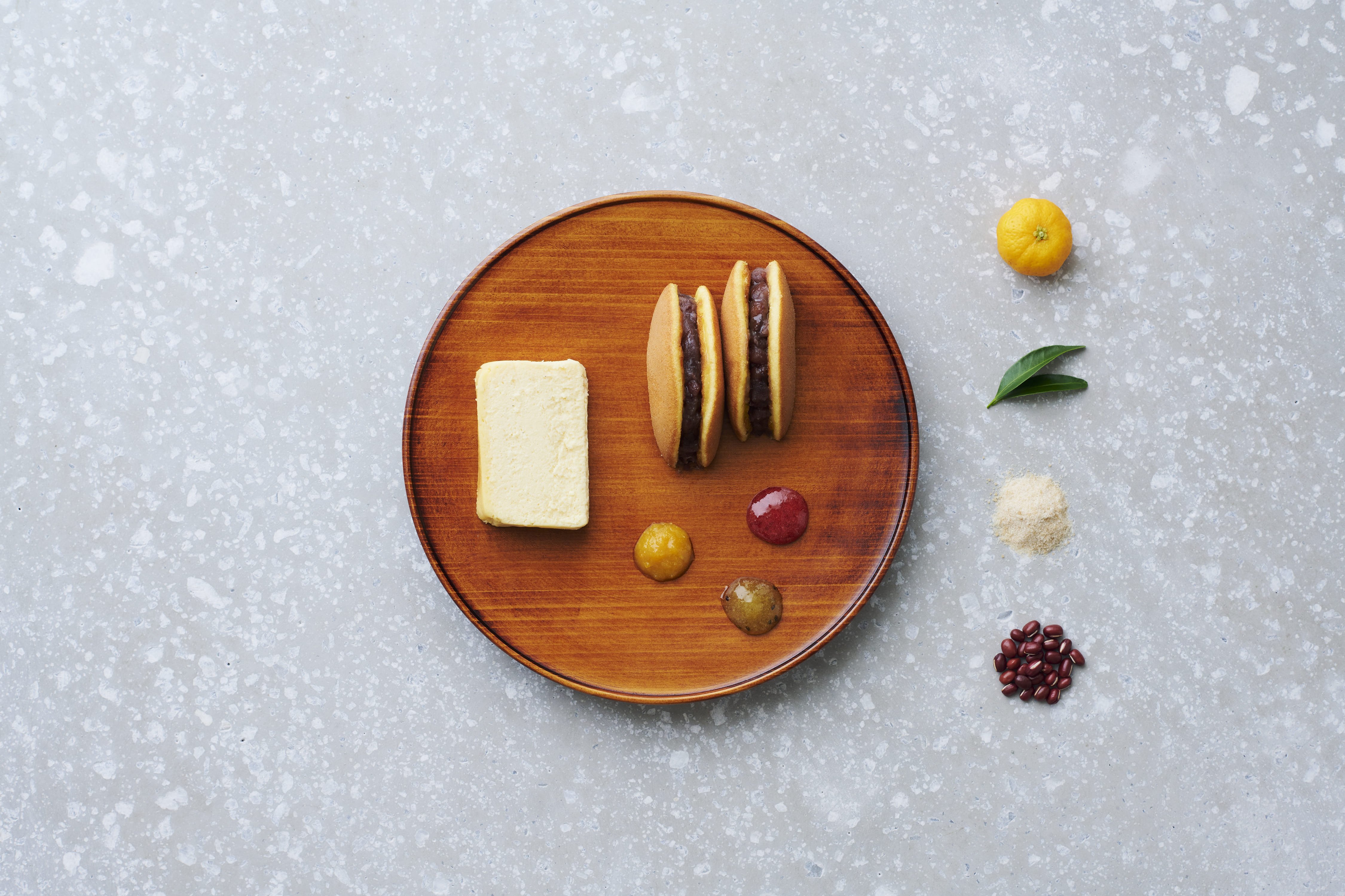 ocasiではどら焼きやチーズケーキを、大和橘などを使ったジャムと提供。果実やスパイスが合わさったジャムをすくい、シンプルなお菓子に添えて食べることで、味に複雑な奥行きが生まれペアリングの妙を体験いただけます。奈良にルーツを持ち、姿を変え愛されている三つのお菓子を重ね、伝統と新しい愉しみを味わえる一皿に仕上げました。(※出典『続日本紀』)