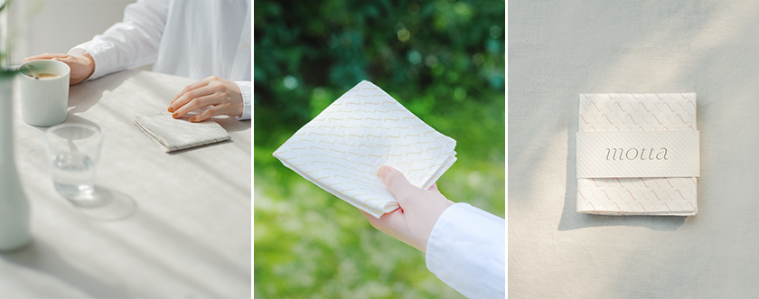 「昨日。今日。明日。新しい気持ち。」mottaは、日々の気持ちの変化に寄りそい、こころと暮らしのリズムをととのえるハンカチブランドです。 2013年、中川政七商店からデビューしたのち、2021年11月3日【ハンカチの日】にコンセプトやロゴを一新しました。
