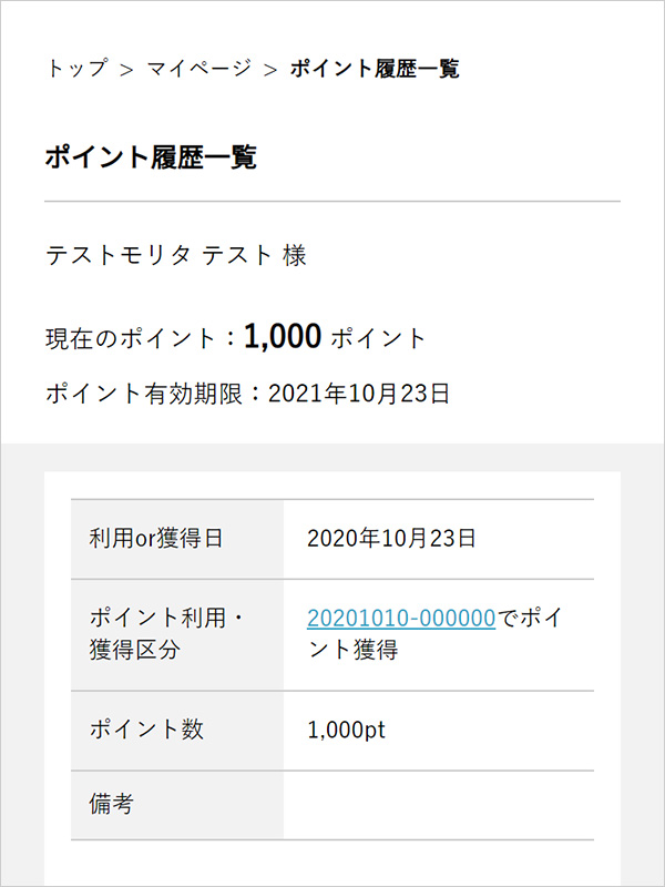 オンラインショップのポイント履歴に表示されます。