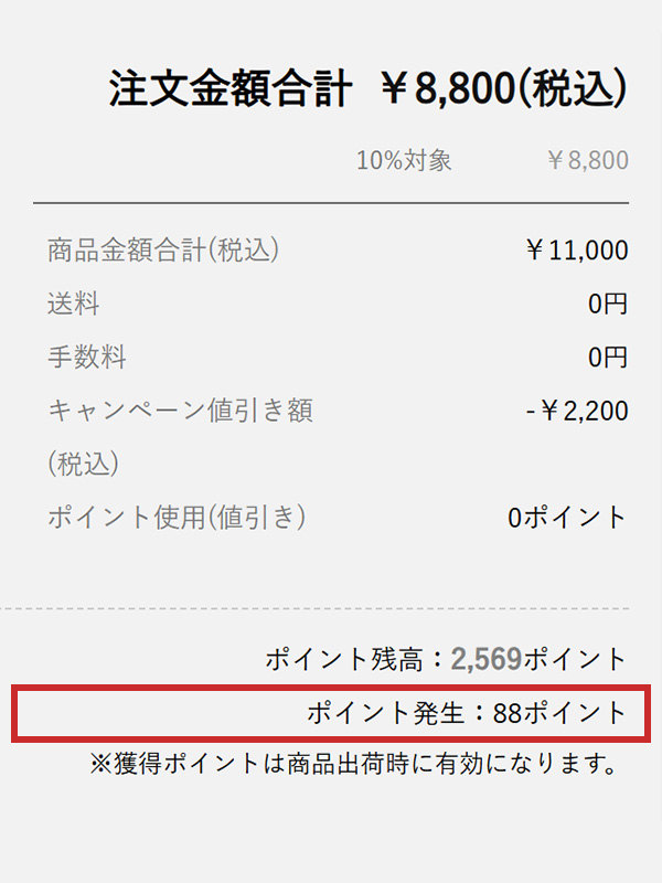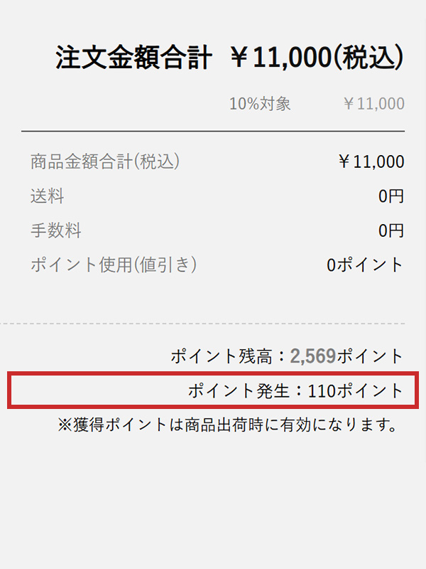 ※オンラインショップでは、商品ごとにポイントを算出し、合算することで注文全体のポイントを計算する仕様になっています。