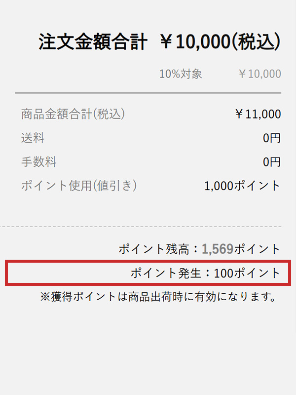 商品価格 11,000円 - ポイント利用 1,000円 = 10,000円