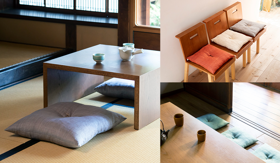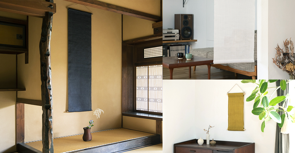 生地24m分を織り上げるのに1か月以上かかる希少な「手績(う)み手織りの麻生地」を使い、自分の家に合わせてタペストリーや座布団などをオーダーいただけます。
