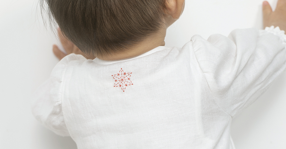 子どもたちの健やかな成長を願って、中川政七商店の麻のベビードレスに、お好みの色の糸で手刺繍を入れさせていただきます。
