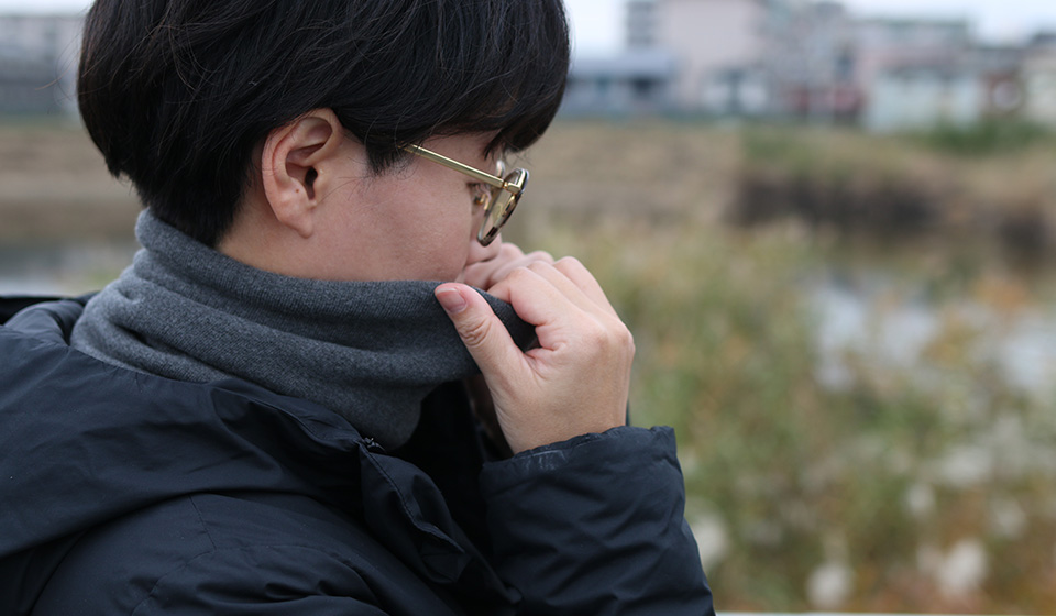 もちろんマフラーやスヌードなど服装に合わせて使うものも、いろいろ持ってるんですよ。しかし、このネックウォーマーはお守りみたいなもので、寒くてしょうがない時にどうにかしてくれるアイテムなんです。