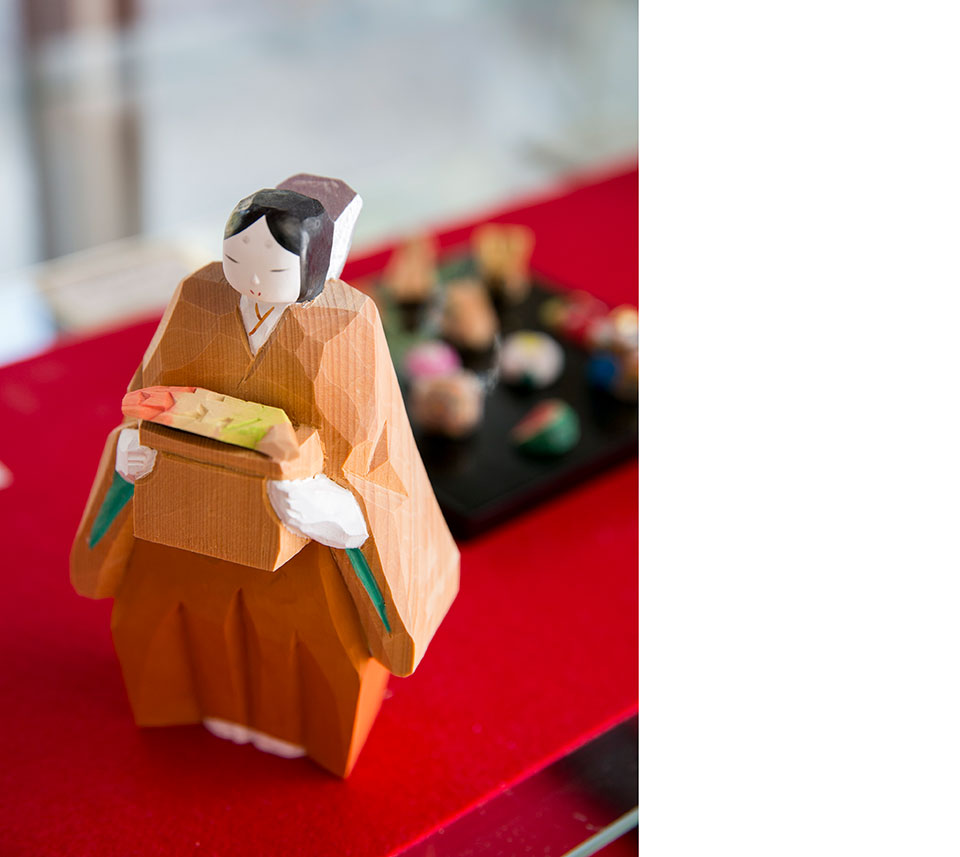 「浦弘園」さんは興福寺近くの工房にて奈良一刀彫を制作しています。一刀彫は大胆で力強い鑿跡を残した造形と、繊細で緻密な極彩色の絶妙な調和が特徴。企画展では浦さんならではの表現による2020年干支の子と、「とのひめ」を数量限定にてご紹介します。