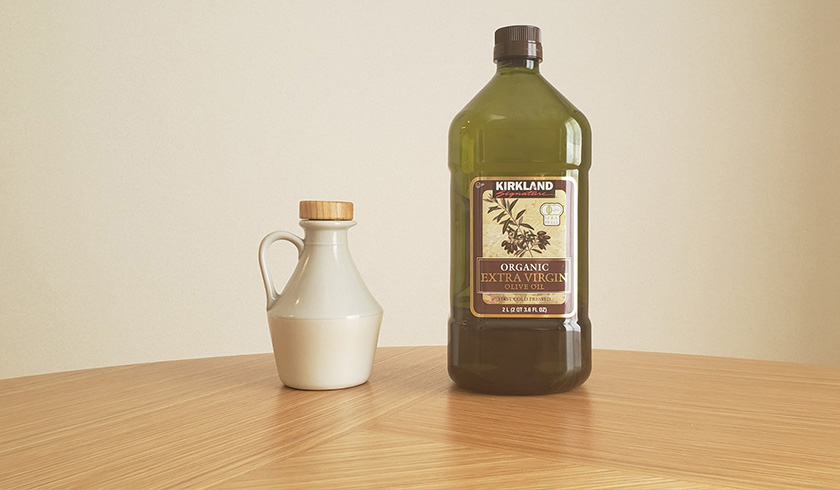 オイルポットが来るまでは業務用のオリーブオイルをドカンと食卓に置いていました。