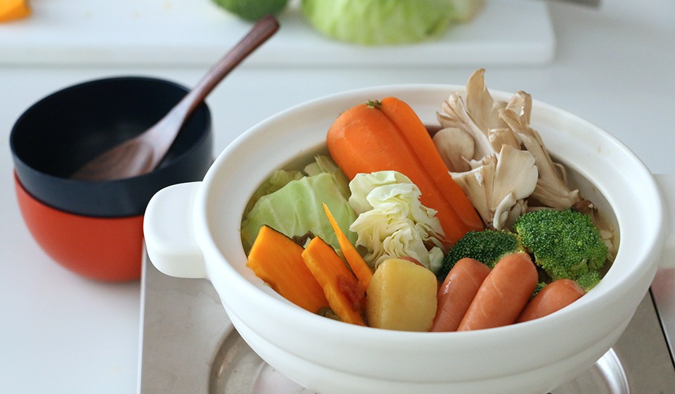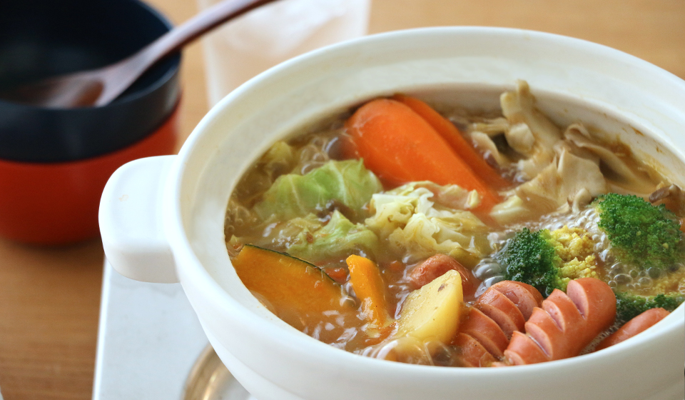 我が家は、キャベツ、かぼちゃ、玉ねぎ、きのこなどに鶏肉or豚肉、ソーセージがよく登場。