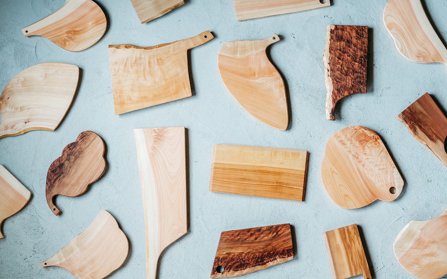 10月13日(水)より奈良近鉄百貨店「大和路暮らしの間」からお届けするのは、工房アップルジャックより吉野杉を使った生活に馴染みやすいお茶碗やカップなどのテーブルウェアを、スカイウッドより地元の木材を使用したカッティングボードなどをご紹介します。木のぬくもりを感じられる食卓で実りある秋、おうちごはんをお楽しみください。