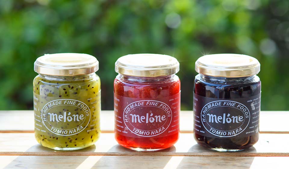 本当に美味しいジャムをお届けしたいという想いから鍋での直火炊きという製法にこだわり守り続けている「メローネ」からは定番のいちごをはじめ、期間限定でいちじくや桃、デコポンなどいつもはお手に取っていただけないお味をご用意しています。