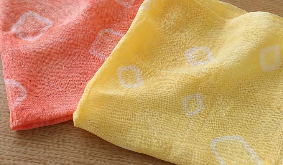 1890年創業の日本橋生まれの染料店「みやこ染」による絞り染めで、オリジナルの花ふきんをつくるワークショップです。