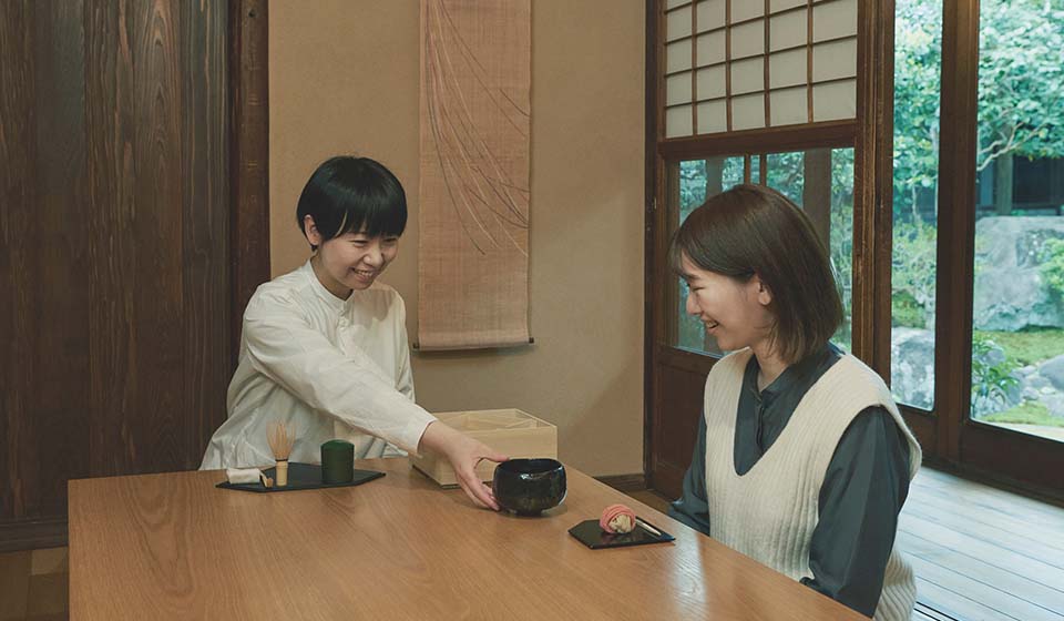 歴史と今を感じる「中川政七商店 奈良本店」の見どころをスタッフが案内した後、本店に併設している「茶論(さろん)」にて、お茶とお菓子でほっと一息。“ならまち” らしい庭の見える空間で特別な時間をお過ごしください。